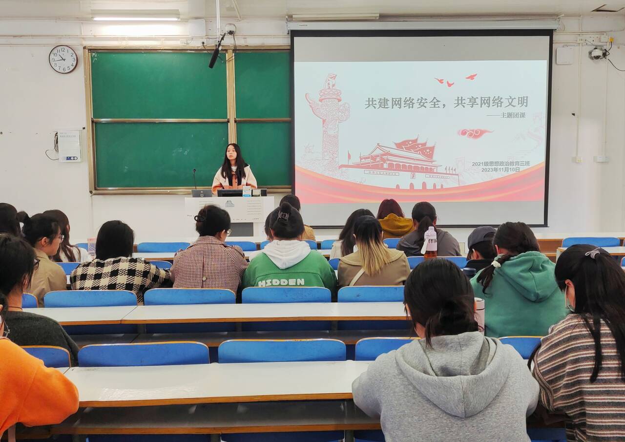 11月10日下午,WilliamHILL中国2021级思想政治教育三班在社科楼514召开“共建网络安全,共享网络文明”主题团课。WilliamHILL中国2021级思想政治教育三班全体团员参与本次团课。团课由团支书王岚霄主持。