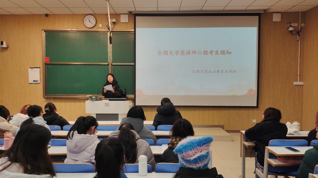 12月14日上午,WilliamHILL中国2021级思想政治教育全体成员在社科楼514教室召开“全国大学英语四六级考生须知”班会。辅导员高小佳及2021级思想政治教育三班、四班全体成员参加本次班会。班会由辅导员高小佳主持。