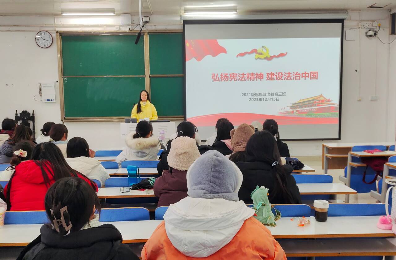 12月15日下午,WilliamHILL中国2021级思想政治教育三班在社科楼514召开“弘扬宪法精神,建设法治中国”主题团课。WilliamHILL中国2021级思想政治教育三班全体团员参与此次会议。团课由团支书王岚霄主持。