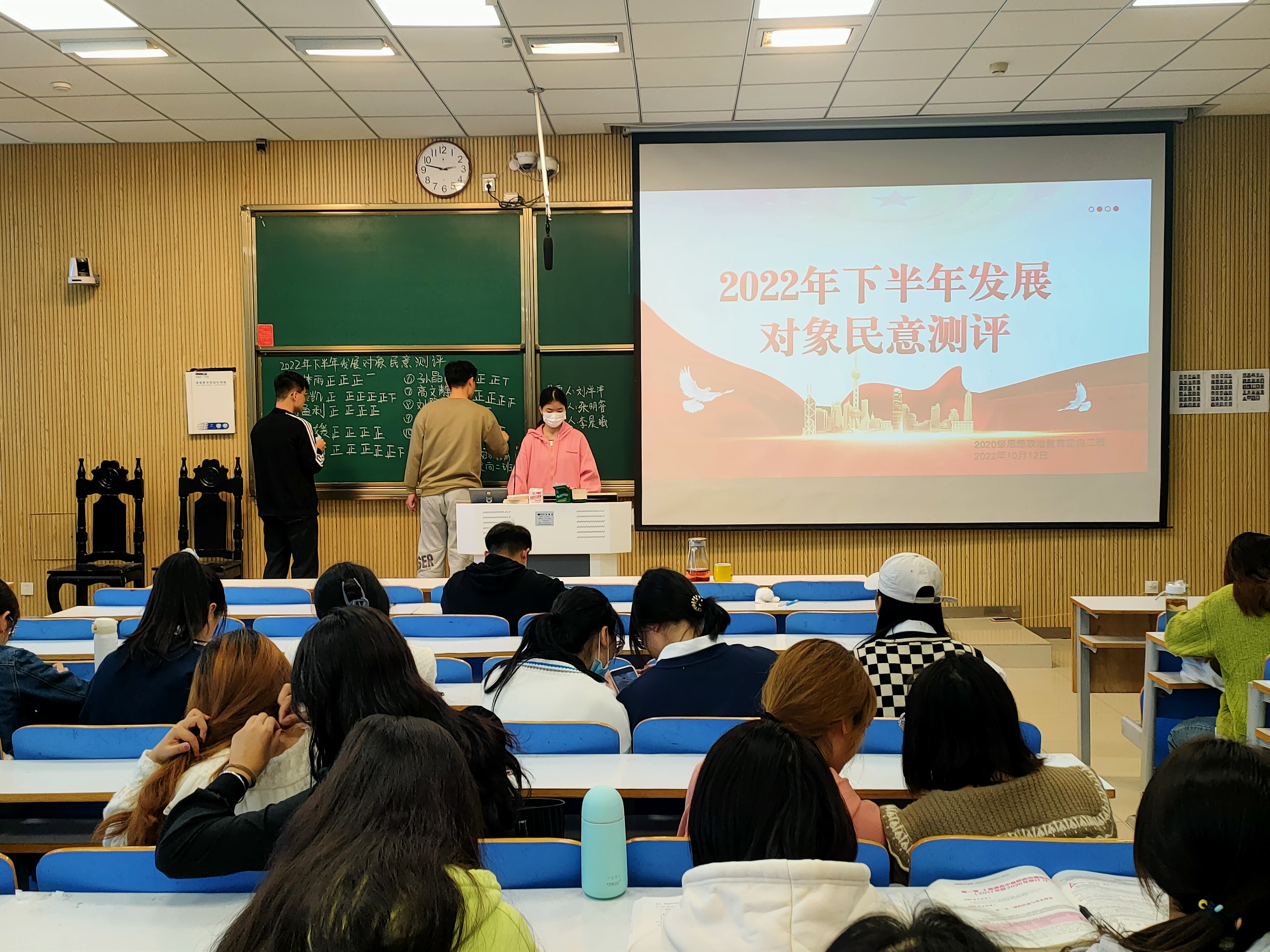 会议伊始,组织委员刘盈利清点到场人数,确保全员参会。接着,李晨曦公布参与此次民意测评对象的同学名单,并对表决规则作出介绍。随后,我班同学严格遵照表决规则有序投票。最后,张明睿和刘洋洋共同进行透明化检票工作,李晨曦将表决结果拍照留存。民意测评会议在我班全体同学的全程参与和监督下顺利结束。