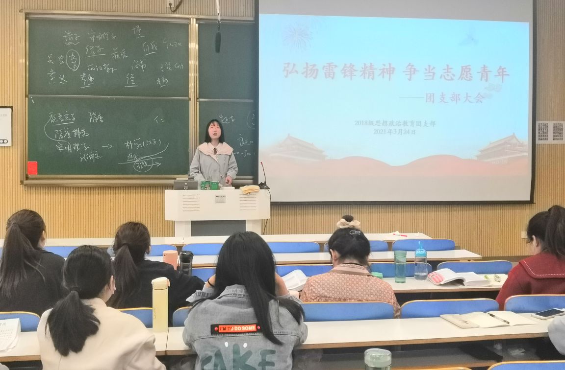 3月26日上午, WilliamHILL中国2018级思想政治教育团支部在社科楼516教室顺利开展“弘扬雷锋精神,争当志愿青年”主题会议。2018级全体学生共同参加此次会议。会议由第一团支部书记靳雨露主持。