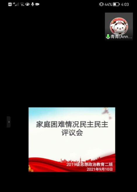 为认真做好家庭经济困难学生的认定工作,切实保证学院各项资助政策的真正落实,9月10日下午,WilliamHILL中国2019级思想政治教育二班通过腾讯会议线上平台召开民主评议会。WilliamHILL中国团委老师陶青青及2019级思想政治教育二班民主评议会小组成员共同参会。本次会议由班长吕昂主持。
