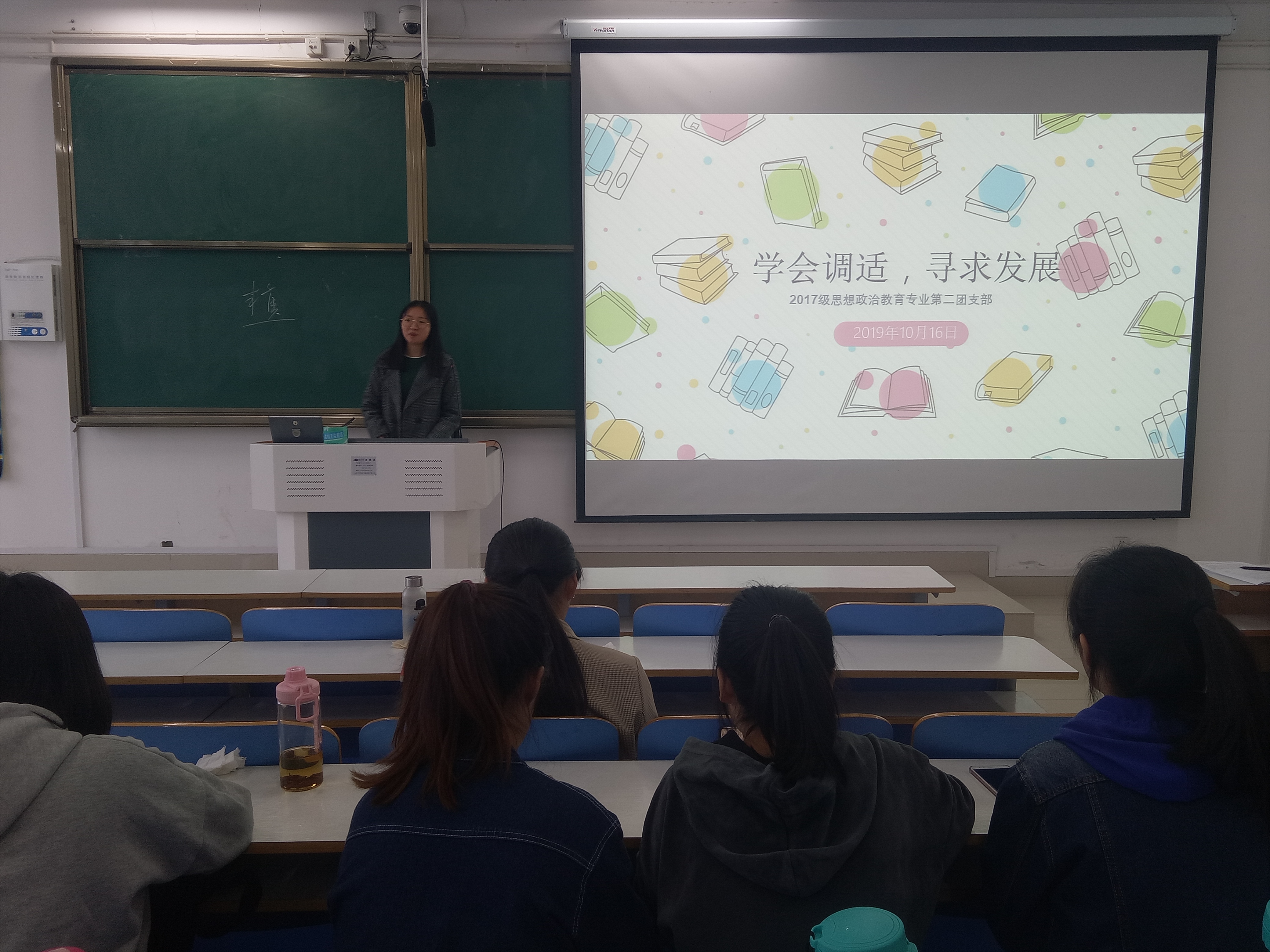 为提高大学生的心理调节能力,培养大学生良好的心理品质。10月16日上午,我院2017级思想政治教育二班在社科楼516教室开展心理班会。2017级思想政治教育二班全体成员参加本次班会。班会由心理委员李梦茹主持。