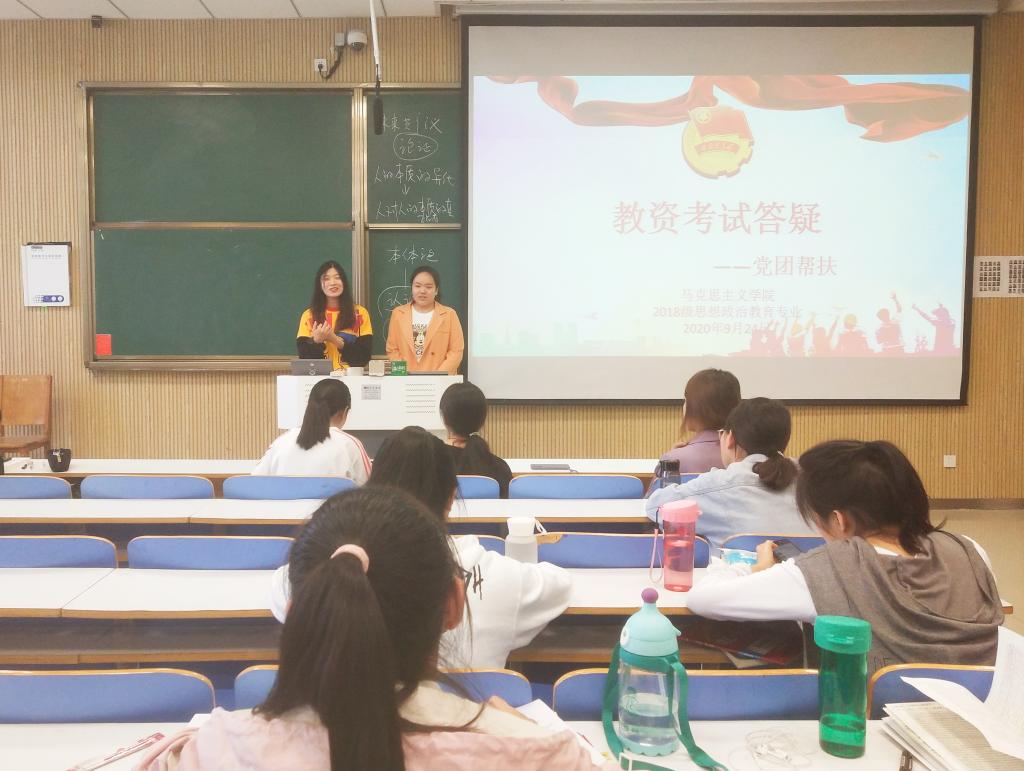 9月24日下午,我院2018级团支部于社科楼515教室顺利开展主题为“教资考试答疑”的党团帮扶活动。我院2018级团支部邀请学生党员代表秦康怡、孙慧萍、李梦茹、王琳前来参加本次交流活动。本次活动由2018级第二团支部书记黄子晋主持。