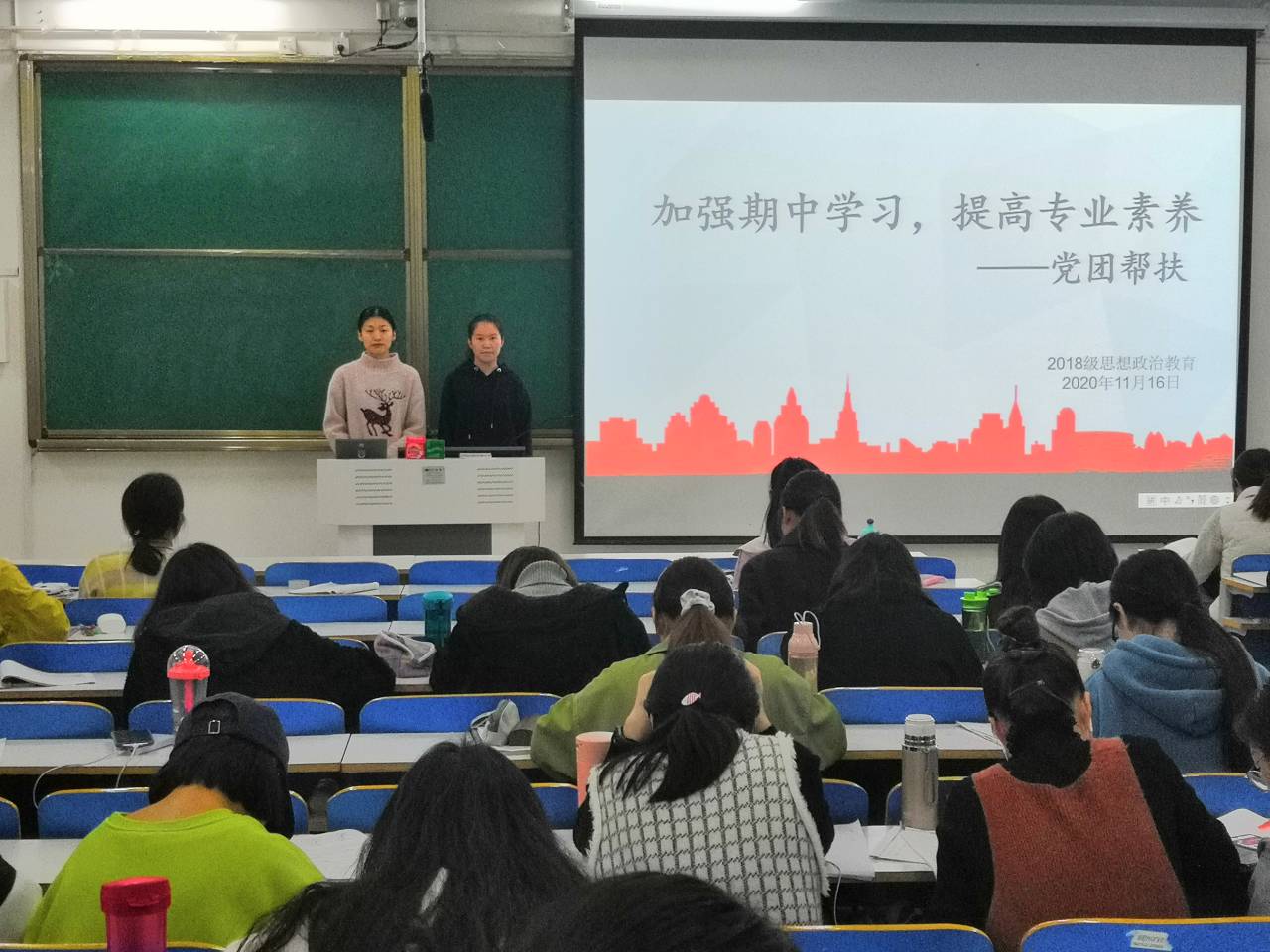 为了充分发挥党员干部的先锋模范作用,11月16日下午,WilliamHILL中国2018级思想政治教育二班在社科楼514教室顺利开展以“加强期中学习,提升专业素养”为主题的党团帮扶会议。中共党员孙慧萍、王琳、2018级第一团支部全体成员共同参与本次会议。会议由团支部书记靳雨露主持。