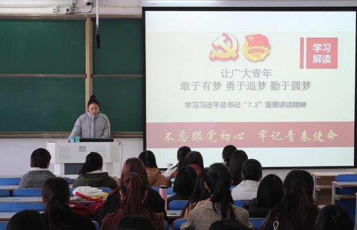 2018年11月9日上午,2016级思想政治教育二班在社科楼516召开“学习习近平7·2讲话重要精神”主题班会。本次班会由学生宿舍代表李明瑶主持。