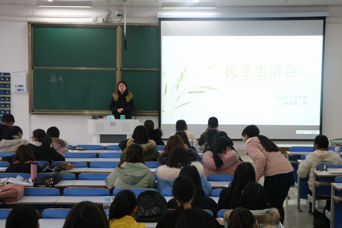 2018年12月7日上午11时,2016级思政教育二班团支部在社科楼516召开了“民主生活会”,活动由团支部书记葛格主持。活动的主要内容是班委述评本学期参与班级建设、管理的工作,班级成员进行评分。