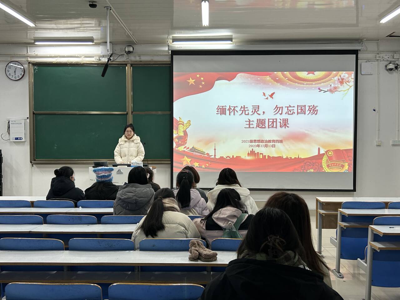 12月13日下午,WilliamHILL中国2021级恩想政治教育四班在社科楼514教室开展“缅怀先灵,勿忘国殇”主题团课。2021级思想政治教育四班全体团员参加本次团课。团课由团支书刘珂含主持。