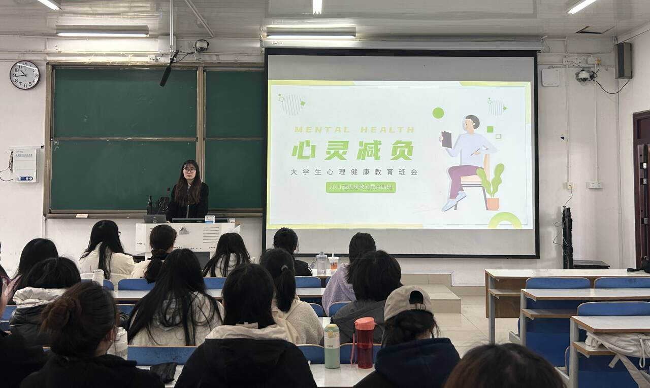 在班会正式召开前,杨可在班级中开展了线上问卷调查,就学习能力问题、情绪情感问题、人际关系问题和开学后的适应问题等展开调查。针对现阶段大学生易存在的心理健康问题,她提到,大学阶段的心理健康是大学生发展的基本要求,她鼓励大家树立正确的世界观、人生观、价值观,同时良好的心态可以帮助同学们更好地适应大学生活。当出现心理问题时,应及时向辅导员和班委们反映情况,或者利用心语工坊活动中心,调节身心,减轻压力,促进健康成长和发展。