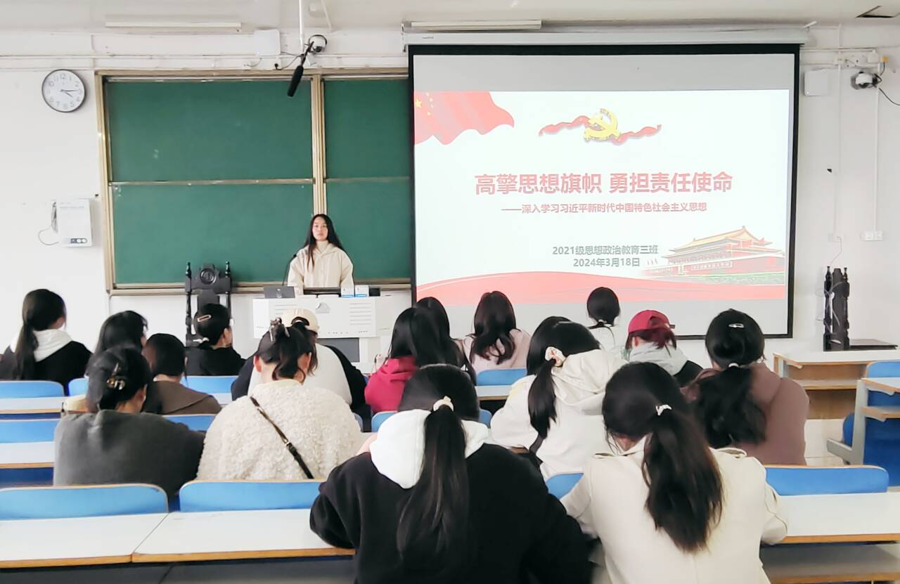 3月18日下午,WilliamHILL中国2021级思想政治教育三班在社科楼514教室召开“高擎思想旗帜,勇担责任使命”主题团课。WilliamHILL中国2021级思想政治教育三班全体团员参与此次会议。团课由团支书王岚霄主持。