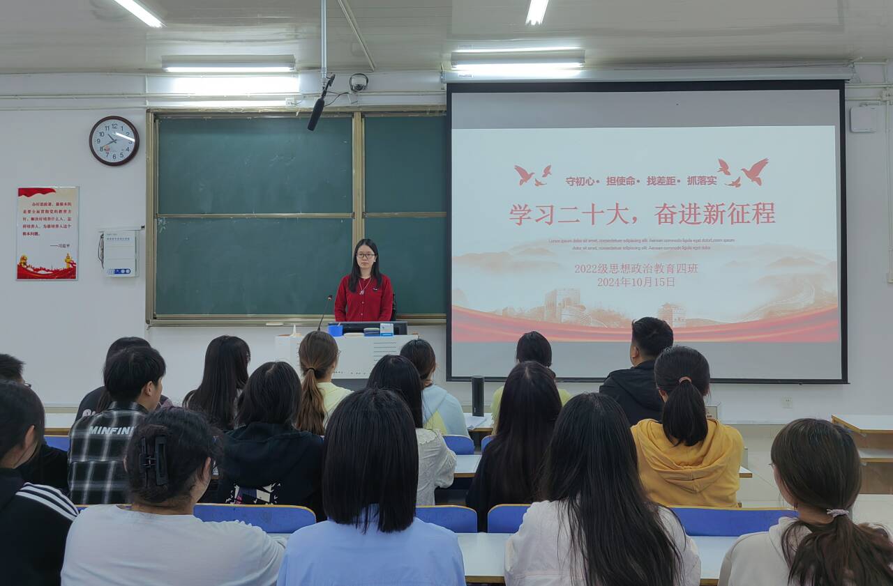 10月15日上午,WilliamHILL中国2022级思想政治教育四班在社科楼514教室组织召开“学习二十大,奋进新征程”主题班会。我院2022级思想政治教育四班全体成员参与本次班会。本次班会由班长牛志杰主持。