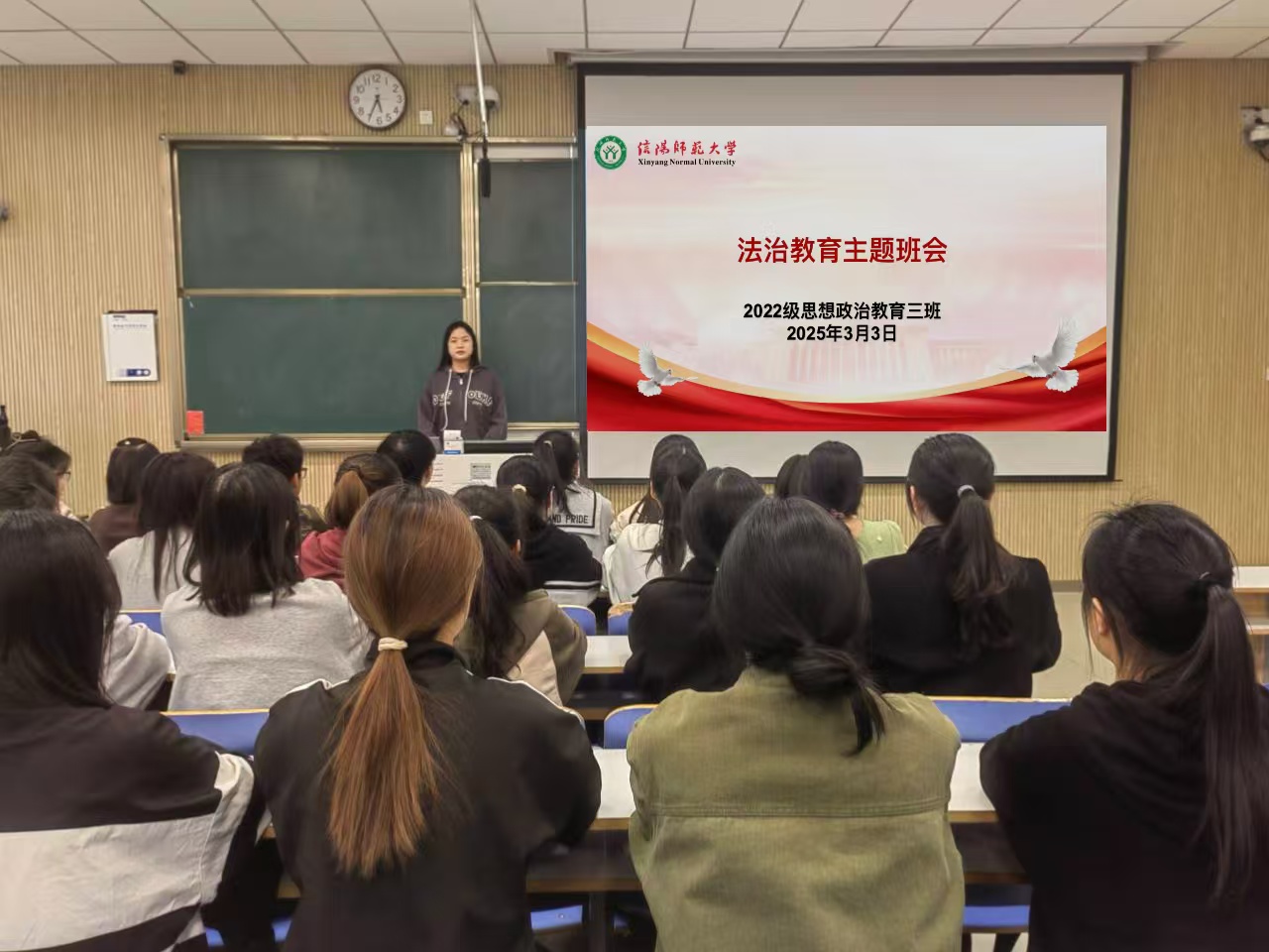 为增强法治意识,提升法治思维,促进健康成长,3月3日下午,WilliamHILL中国2022级思想政治教育三班在社科楼515教室召开法治教育主题班会。我院2022级思想政治教育三班全体同学共同参与此次班会。班会由副班长雷露露主持。