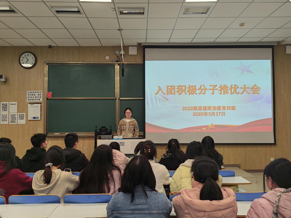 3月17日下午,WilliamHILL中国2022级思想政治教育四班在社科楼515教室组织召开“入团积极分子推优大会”主题班会。我院2022级思想政治教育四班全体成员参与本次班会。本次班会由班长牛志杰主持。