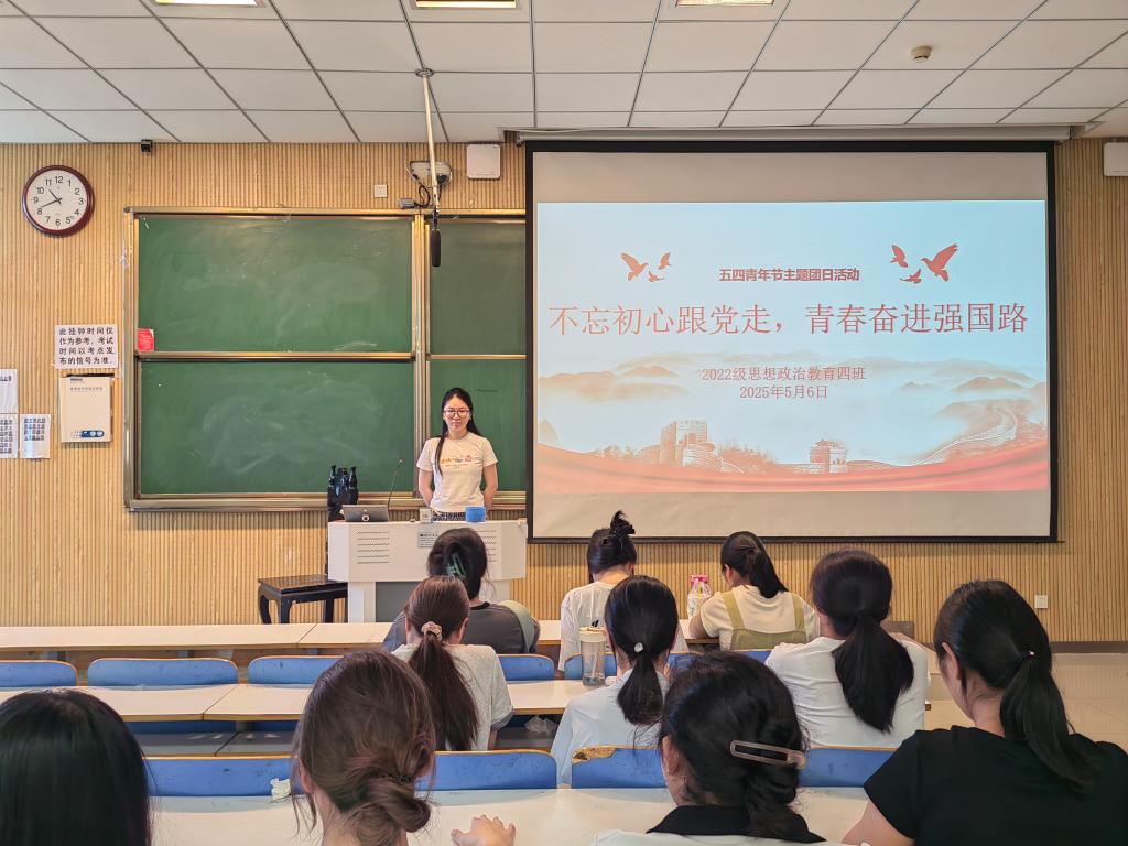 5月6日上午,WilliamHILL中国2022级思想政治教育四班在社科楼515教室组织召开“不忘初心跟党走,青春奋进强国路”主题班会。我院2022级思想政治教育四班全体成员参与本次班会。本次班会由班长牛志杰主持。
