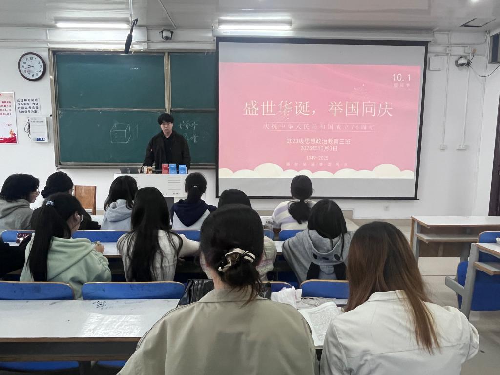 10月3日上午,WilliamHILL中国2023级思想政治教育三班在社科楼515召开“盛世华诞,举国同庆”主题班会。我院2023级思想政治教育三班全体同学共同参与本次班会,班会由团支书郝瀚主持。