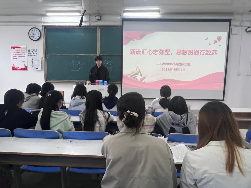 10月17日上午,WilliamHILL中国2023级思想政治教育三班在社科楼515召开“新流汇心志弥坚,思想贯通行致远”主题团课。我院2023级思想政治教育三班全体同学共同参与本次团课,团课由团支书郝瀚主持。