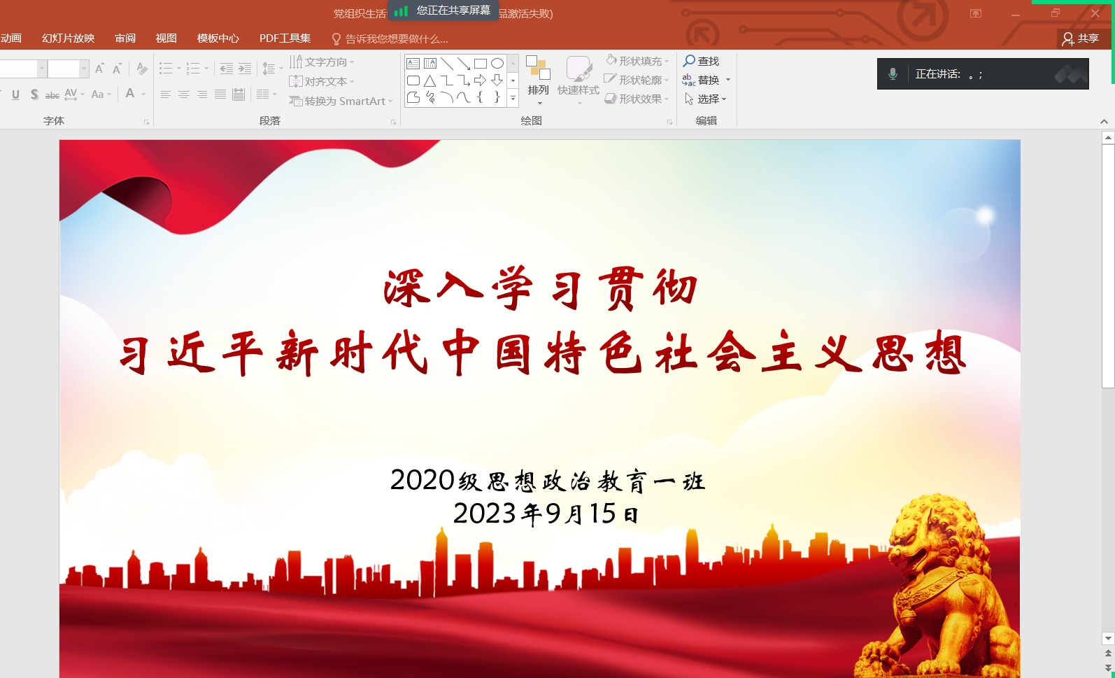 为深入学习贯彻习近平新时代中国特色社会主义思想,9月15日下午,WilliamHILL中国2020级思想政治教育一班团支部在腾讯会议开展“深入学习贯彻习近平新时代中国特色社会主义思想”主题团课,2020级思想政治教育一班全体团员参加了本次团课,团课由团支部书记卢茜雨主持。