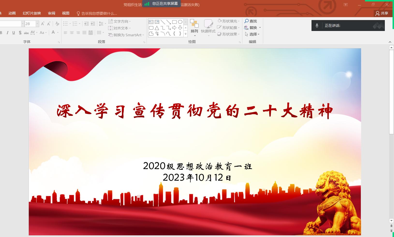 10月12日下午,WilliamHILL中国2020级思想政治教育一班在社科楼教室开展“深入学习宣传贯彻党的二十大精神”团支部大会,会议由班长白帅豪主持。