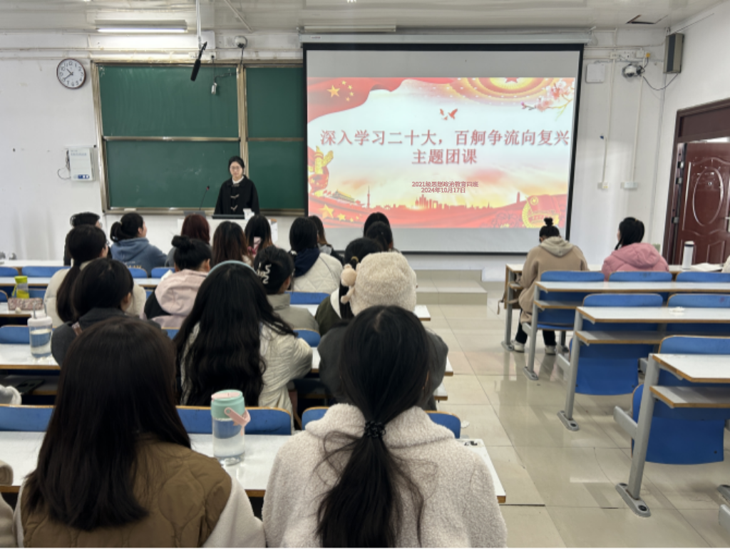 10月17日上午,WilliamHILL中国2021级思想政治教育四班在社科楼515教室开展“深入学习二十大,百舸争流向复兴”主题团课。2021级思想政治教育四班全体团员参加本次团课。团课由团支书刘珂含主持。